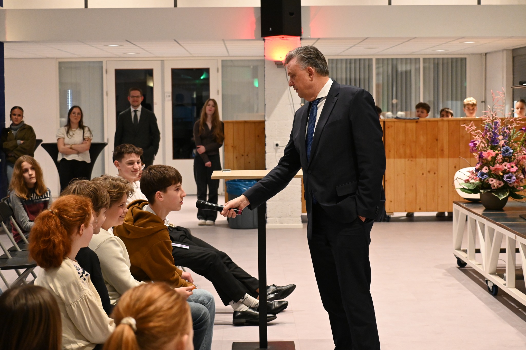 De debatclub van het Sophianum nam het initiatief tot deze unieke ontmoeting tussen leden van de politieke partijen van de gemeente Gulpen-Wittem en onze leerlingen. De avond werd geopend door gouverneur Emile Roemer, die op een enthousiaste wijze meteen de zaal in dook om de interesse voor de politiek te peilen, waarom je er voor zou kiezen om raadslid te worden en wat de jongeren vonden van een eventueel social media verbod onder 15 jaar.