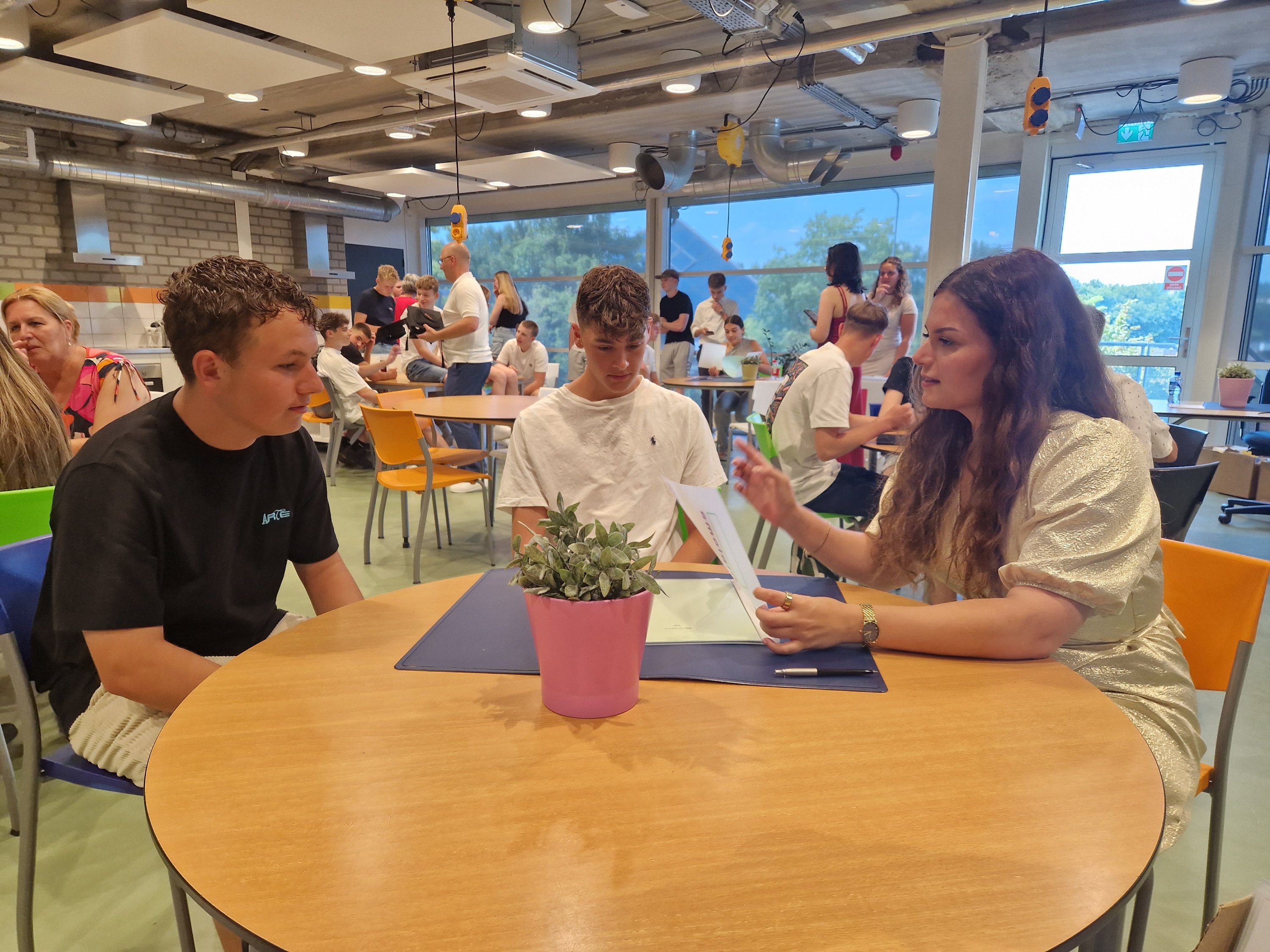 "V'r zunt d'r vanaaf!" De twee leerlingen lopen, met hun diploma in hun hand, richting de cadeautafel van de oudervereniging. Het is woensdagmiddag 2 juli - de diplomering van de leerlingen van het VMBO. Alle leerlingen van het VMBO zijn geslaagd! Trots verzamelen ze in de D&P-ruimte om het diploma te ondertekenen. Dat moment pakken. Ouders maken foto's. Het diploma markeert het einde van vier jaar Sophianum. Mentoren glimmen van trots.